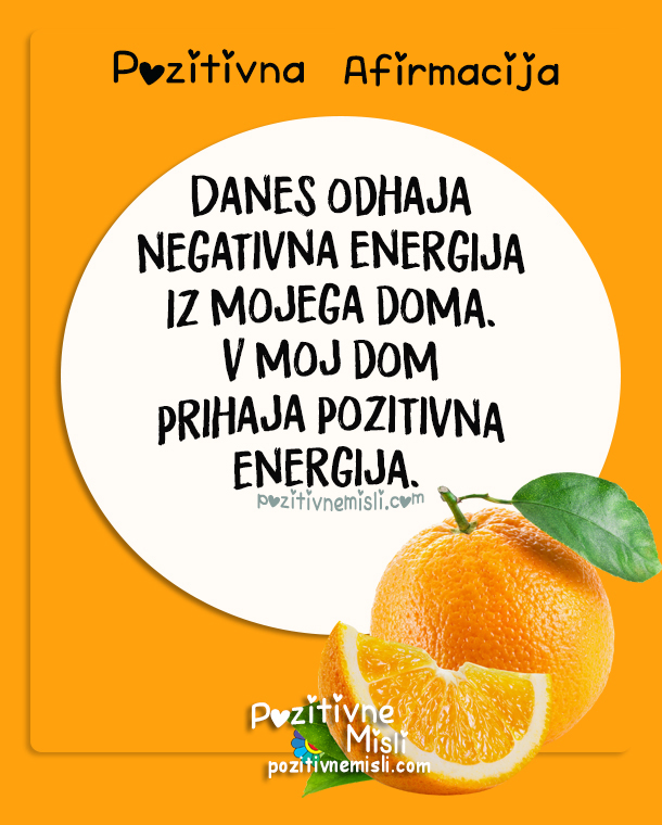 Danes odhaja negativna energija iz mojega doma. V moj dom prihaja sveža pozitivna energija.