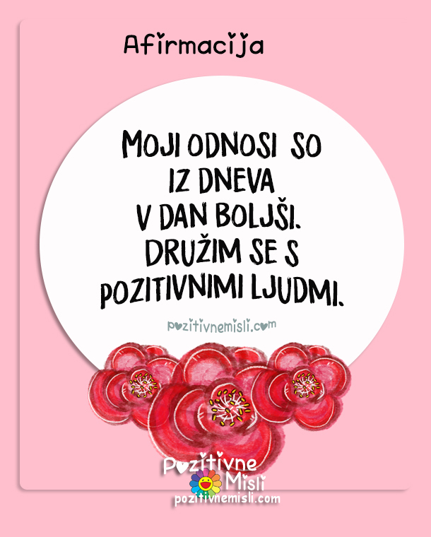 MOJI ODNOSI so iz dneva v dan boljši. Družim se s pozitivnimi ljudmi.