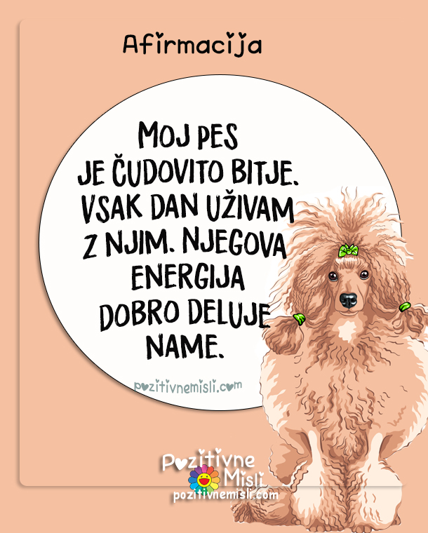 Moj pes je čudovito bitje. Vsak dan uživam z njim. Njegova energija dobro deluje name.