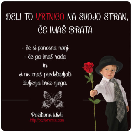 Deli to vrtnico na svojo stran, če imaš BRATA; če si ponosna nanj. Če ga imaš rada in si ne znaš predtavljati življenja brez njega.