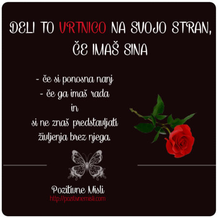 Deli to vrtnico na svojo stran, če imaš SINA; če si ponosna nanj. Če ga imaš rada in si ne znaš predtavljati življenja brez njega.