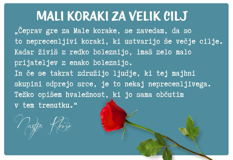 bolezen, cilj, ljudje, Mali koraki za velik cilj, misel, prijatelji, srce, svet, vrtnica, zahvalaBodite del moje skupnosti