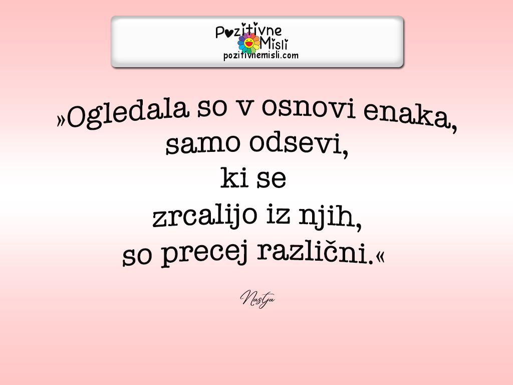 »Ogledala so v osnovi enaka, samo odsevi, ki se zrcalijo iz njih, so precej različni.«