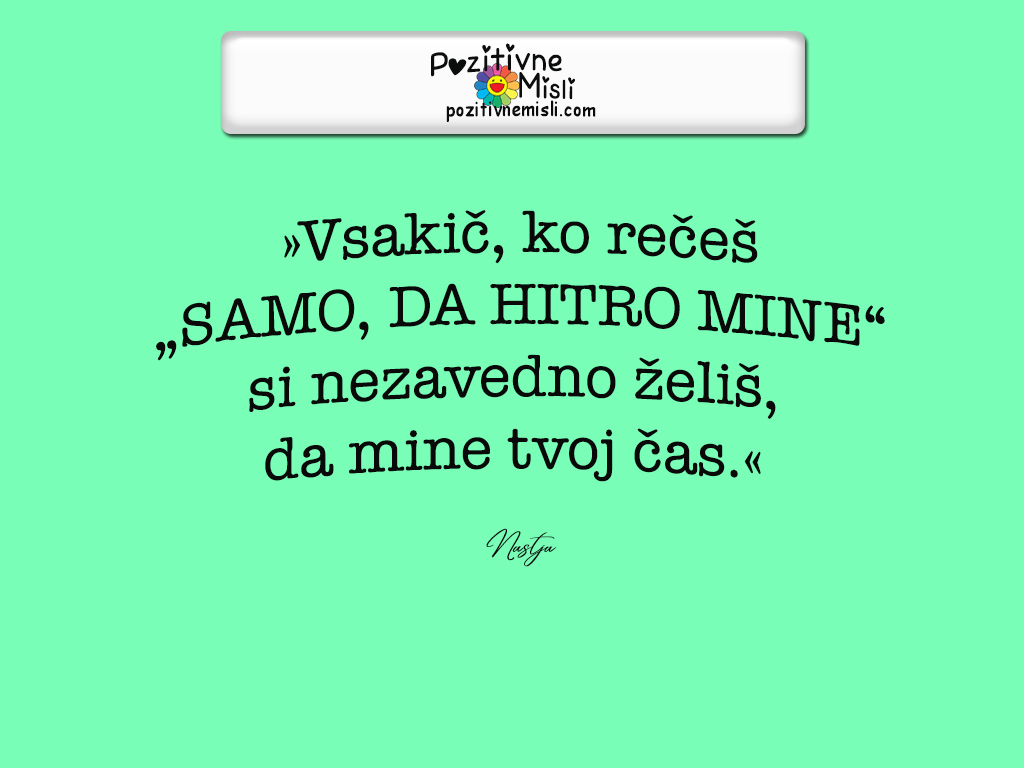 »Vsakič, ko rečeš: „Samo, da hitro mine“ si nezavedno želiš, da mine tvoj čas.«