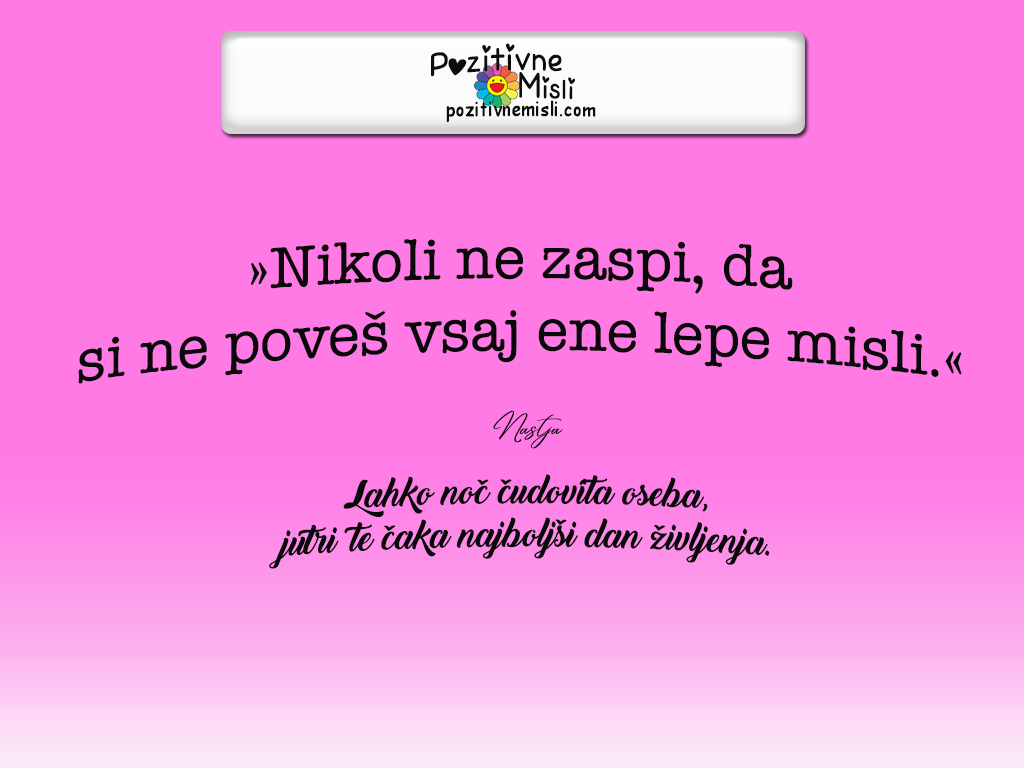 Nikoli ne zaspi, da si ne poveš vsaj ene lepe misli.