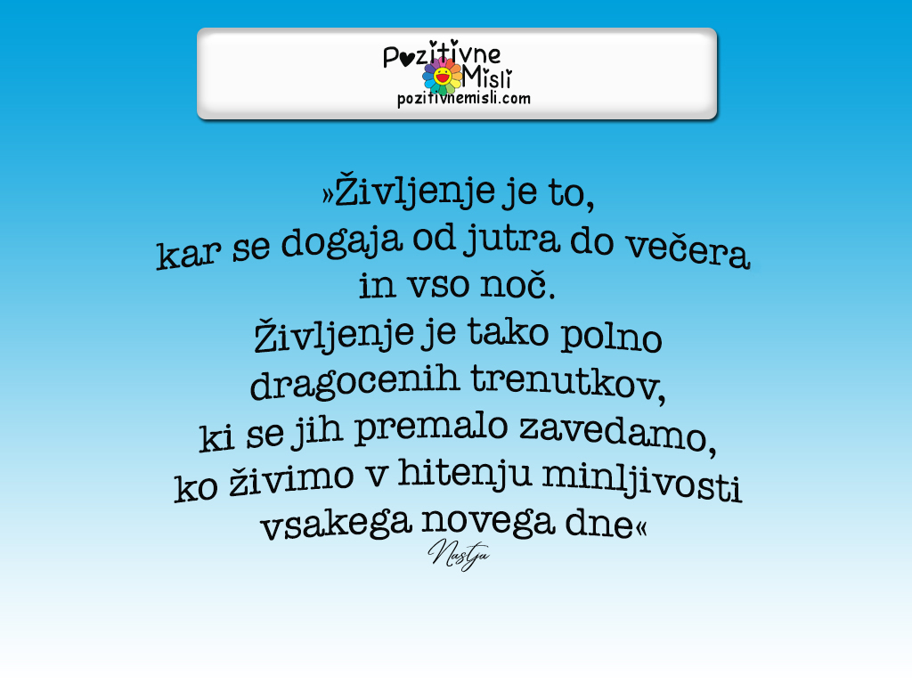 Življenje je tako polno dragocenih trenutkov, ki se jih premalo zavedamo, ko živimo v hitenju minljivosti vsakega novega dne«