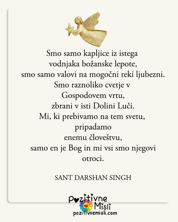 Smo samo kapljice iz istega vodnjaka božanske lepote,