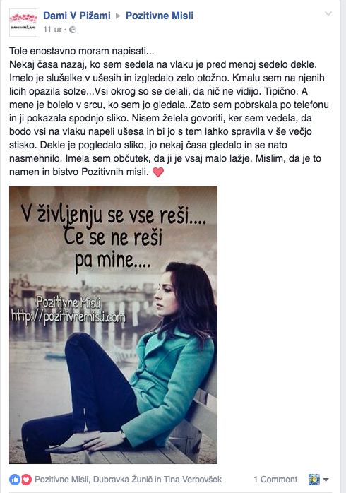 V mislih se mi je odvrtela najlepša misel … Vso pot iz bolnice do doma sem čakala, da jo zapišem. Imenuje se moja prva POZITIVČICA. Vsak naslednji dan so, kar vrele iz mene. Te misli, ta želja po sporočilih.