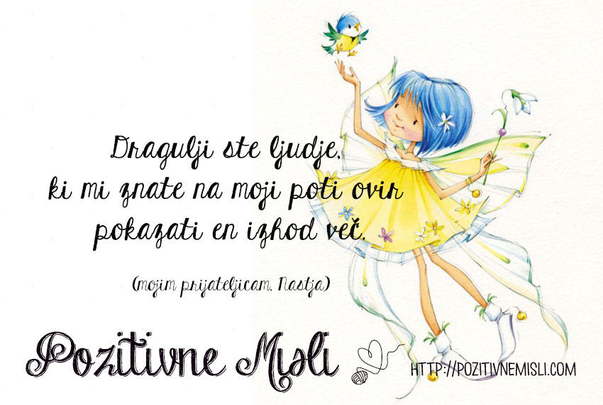 Zakaj ste moji dragulji? Od Nastja Klevže 04/01/2012 1 Min Branje 41 Dragulji ste ljudje, ki mi znate na moji poti ovir pokazati en izhod več. (mojim prijateljicam, Nastja) Mojim prijateljicam Skupine: Kolumne, Osebna rast 1, Zadnja posodobitev 01/02/2024 Oznake: citat, iskušnje, mavrica, mavrična pot, misli o prijateljstvu, ovire, pot, Prijateljstvo, spremembe, življenje